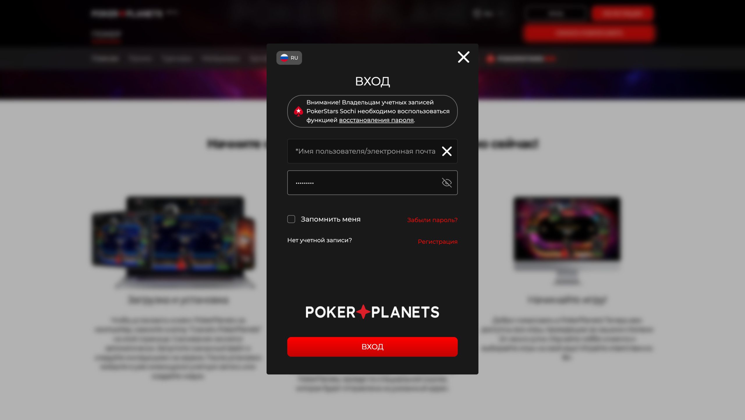 - Откройте официальный сайт pokerplanets.com или запустите клиент.